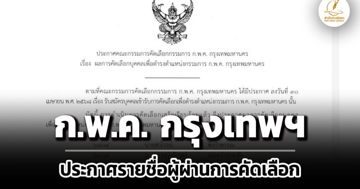 ก.พ.ค. กรุงเทพมหานคร ประกาศรายชื่อ 3 ผู้ทรงคุณวุฒิ ผ่านการคัดเลือกดำรงตำแหน่งกรรมการฯ ชุดใหม่