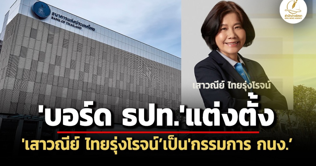 เมื่อวันที่ 26 ก.พ. น.ส.ดวงพร รอดเพ็งสังคหะ ผู้ช่วยเลขานุการคณะกรรมการธนาคารแห่งประเทศไทย เปิดเผยว่า ในการประชุมคณะกรรมการธนาคารแห่งประเทศไทย (บอร์ด ธปท.) เมื่อวันที่ 25 ก.พ.2569 ที่ประชุมได้คัดเลือกและมีมติแต่งตั้ง นางเสาวณีย์ ไทยรุ่งโรจน์ เป็นกรรมการผู้ทรงคุณวุฒิในคณะกรรมการนโยบายการเงิน (กนง.) แทนนายรพี สุจริตกุล ที่ลาออกก่อนครบวาระ โดยมีผลตั้งแต่วันที่ 26 ก.พ.2569 และมีวาระการดำรงตำแหน่งเท่ากับวาระที่เหลืออยู่ของนายรพี สุจริตกุล คือ จนถึงวันที่ 31 ต.ค.2569