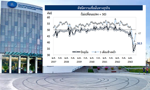 เมื่อวันที่ 1 ก.ค. ธนาคารแห่งประเทศไทย (ธปท.) เผยแพร่รายงานดัชนีความเชื่อมั่นทางธุรกิจเดือนมิ.ย.63 ว่าดัชนีฯ ปรับเพิ่มขึ้นจาก 34.4 ในเดือนก่อนมาอยู่ที่ 38.5 ซึ่งเป็นการเพิ่มขึ้นในเกือบทุกธุรกิจ โดยเฉพาะกลุ่มผู้ผลิตเครื่องใช้ไฟฟ้า ที่ดัชนีฯปรับตัวขึ้นมาอยู่เหนือระดับ 50
