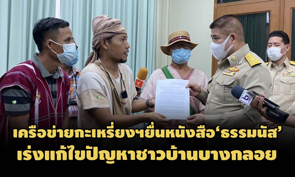 ผู้สื่อข่าวรายงานว่า เมื่อวันที่ 8 มี.ค.2564 เมื่อเวลา 13.30 น. เครือข่ายกะเหรี่ยงเพื่อวัฒนธรรมและสิ่งแวดล้อมภาคตะวันตก เข้ายื่นหนังสือถึง ร.อ.ธรรมนัส พรหมเผ่า รมช.เกษตรและสหกรณ์ ในฐานะรองประธานคณะกรรมการแก้ไขปัญหาของขบวนการประชาชนเพื่อสังคมที่เป็นธรรม (พีมูฟ) เพื่อสอบถามความชัดเจนการแก้ไขปัญหากรณีความเดือดร้อนของชุมชนกะเหรี่ยงบางกลอย ระบุว่า สืบเนื่องจากการปฎิบัติยุทธการพิทักษ์ป่าต้นน้ำเพชร พบชาวบ้านในพื้นที่ใจแผ่นดิน 87 ราย มีผู้อยู่ในหมายศาล 22 ราย และดำเนินการเทียบปรับอีก 28 ราย ถึงแม้ว่าศาลจะมีคำสั่งอนุญาตปล่อยตัวชั่วคราวชาวบ้านทั้ง 22 ราย โดยแต่งตั้งผู้ใหญ่บ้านเพื่อกำกับดูแลให้ปฏิบัติตามเงื่อนไขที่ศาลกำหนดอย่างเคร่งครัดแล้ว แต่เครือข่ายกะเหรี่ยงฯ มีความกังวลต่อการแก้ไขปัญหา จึงมีข้อเรียกร้องเร่งด่วน ดังนี้