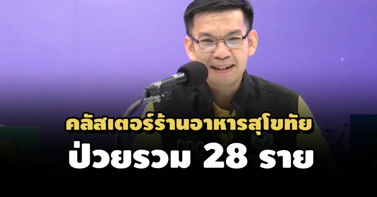 สธ.แจงคลัสเตอร์ร้านอาหาร จ.สุโขทัย ป่วยรวม 28 ราย ที่มาคุมเข้มมาตรการร้านอาหาร ย้ำเวิร์คฟอร์มโฮมอย่างเต็มรูปแบบ ออกจากบ้านเท่าที่จำเป็น หวั่นซ้ำรอย คลัสเตอร์ธนาคาร จ.สงขลา - พร้อมแจงผลข้างเคียงวัคซีนเกิดขึ้นได้ ยันวัคซีนมีประสิทธิภาพป้องกันความรุนแรงของโรค
