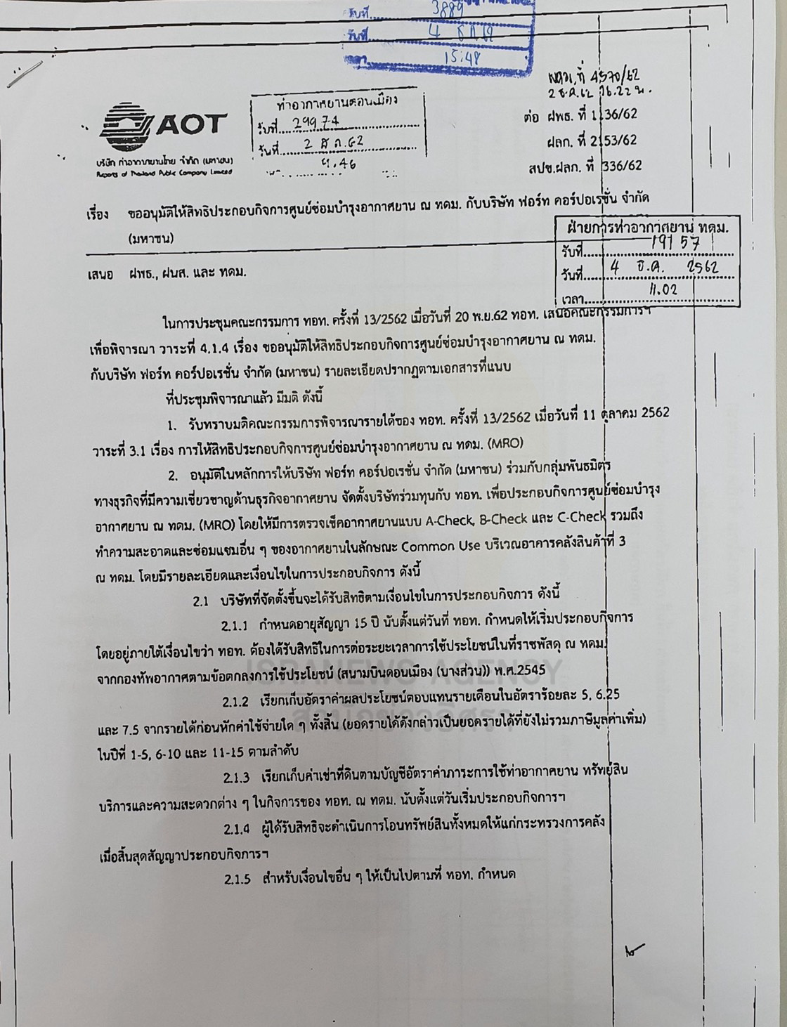 รายงานข่าวแจ้งว่า ในปี 2563 ที่ผ่านมา ทอท. และบริษัท ฟอร์ท คอร์ปอเรชั่น จำกัด (มหาชน) ได้ร่วมกันจัดตั้งบริษัทร่วมทุนฯ ตามมติบอร์ด ทอท. เมื่อวันที่ 20 พ.ย.2562 เพื่อประกอบกิจการศูนย์ซ่อมบำรุงอากาศยาน ณ ท่าอากาศยานดอนเมือง (MRO) โดยให้มีการตรวจเช็คอากาศยานแบบ A-Check , B-Check และ C-Check รวมถึงทำความสะอาดและซ่อมแซมอื่นๆ ของอากาศยานในลักษณะ Common Use บริเวณอาคารคลังสินค้าที่ 3 ณ ท่าอากาศยานดอนเมือง