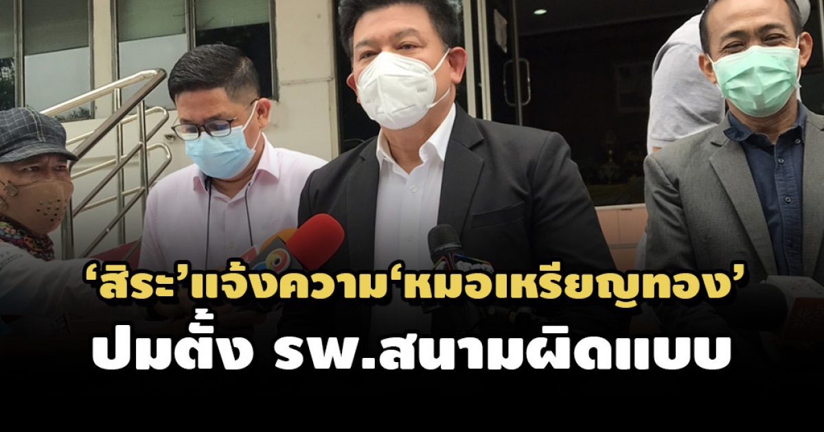 'สิระ'แจ้งความ'หมอเหรียญทอง'โพสต์ข้อความหมิ่นประมาทผ่านเฟซบุ๊ก หลังลงตรวจ รพ.สนาม ย่านหลักสี่ ตั้งผิดแบบ ไม่ขออนุญาต จี้กรมควบคุมโรคเข้าสอบ จ่อฟัน ม.157 หากไม่ดำเนินการ