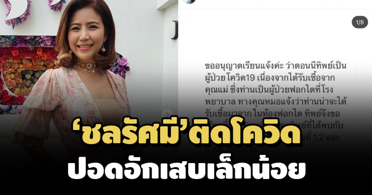 'ชลรัศมี งาทวีสุข' ผู้ประกาศข่าวชื่อดัง ติดโควิด เผยมีอาการปอดอักเสบเล็กน้อย พร้อมระบุไทม์ไลน์ละเอียด คาดรับเชื้อจากแม่ซึ่งเป็นผู้ป่วยฟอกไตที่โรงพยาบาล