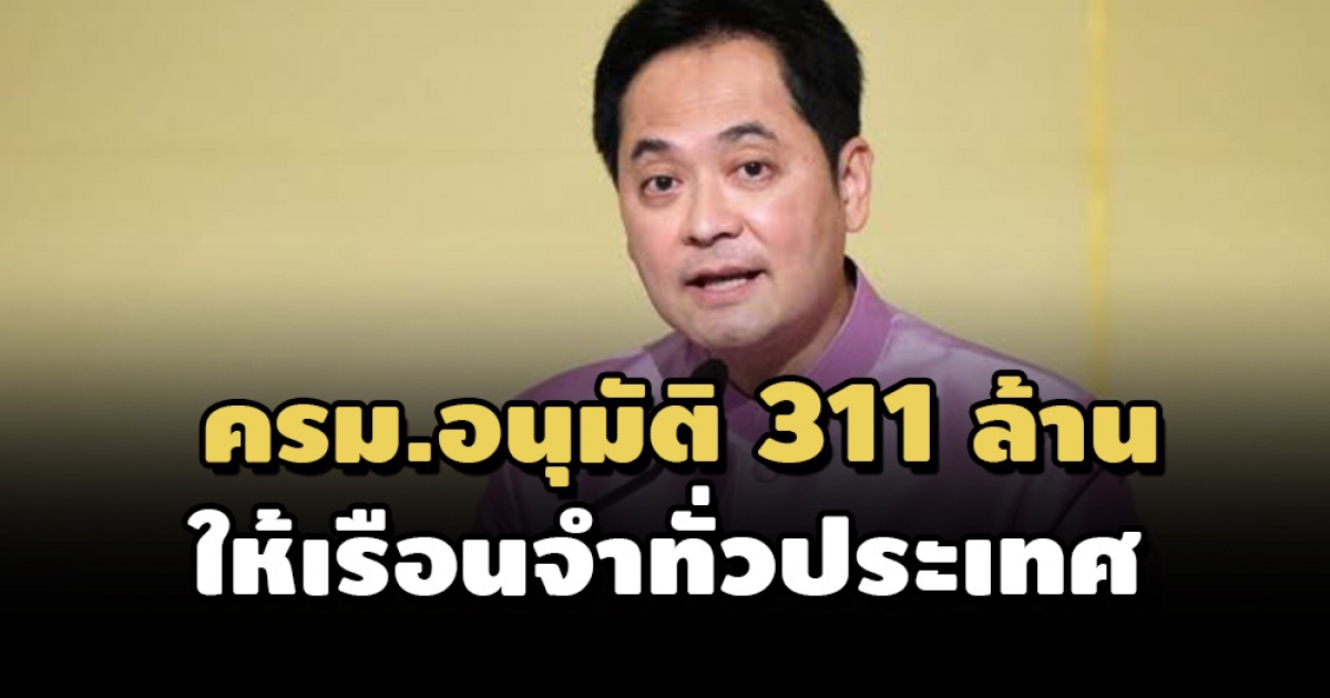 คณะรัฐมนตรีอนุมัติ 311 ล้านบาท ให้เรือนจำและทัณฑสถานทั่วประเทศ เป็นค่าใช้จ่ายป้องกันโควิด 5 รายการ เพื่อจัดหาชุดตรวจ-อุปกรณ์ สร้างรพ.สนาม และปรับปรุงห้องกักกันโรค