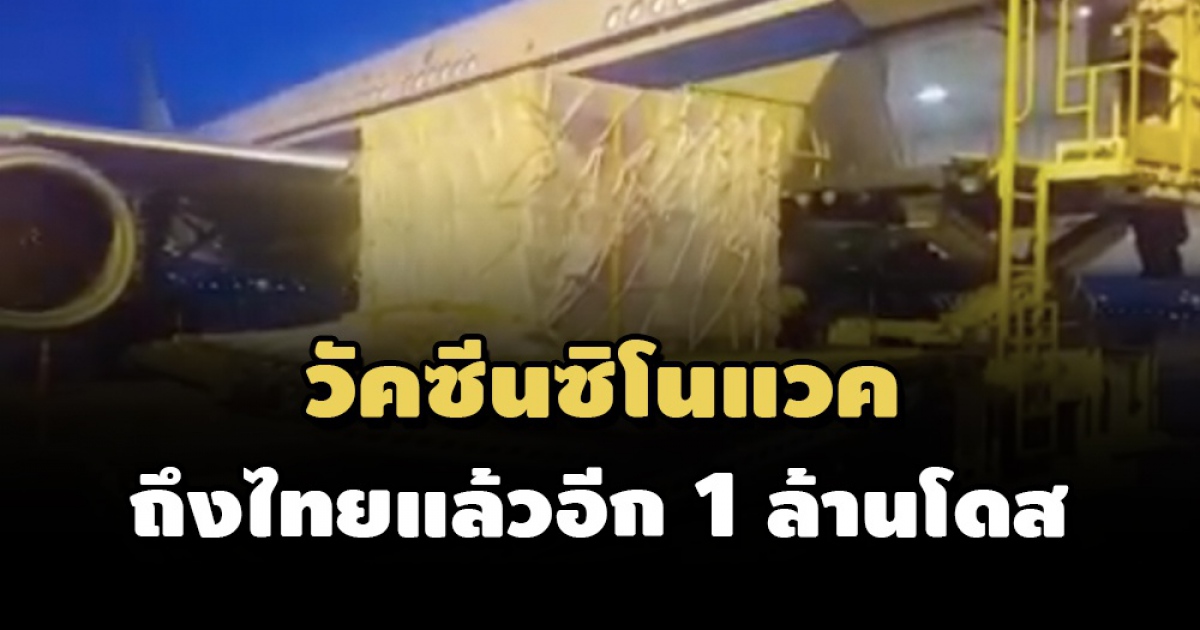วัคซีนซิโนแวคอีก 1 ล้านโดส ส่งถึงไทยแล้ว จีนส่งออกและบริจาคให้ไทยรวม 7.5 ล้านโดส