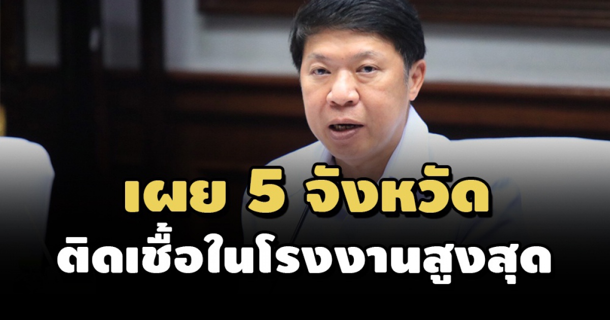 กรมอนามัย กระทรวงสาธารณสุข เผย 5 จังหวัดติดเชื้อในโรงงานสูงสุด ย้ำผู้ประกอบการใช้ 4 มาตรการหลัก ประเมิน Thai Stop COVID Plus คุมเข้มโควิด ส่วนพนักงานให้ปฏิบัติตามมาตรการ DMHTTA และประเมินไทยเซฟไทยทุกวัน