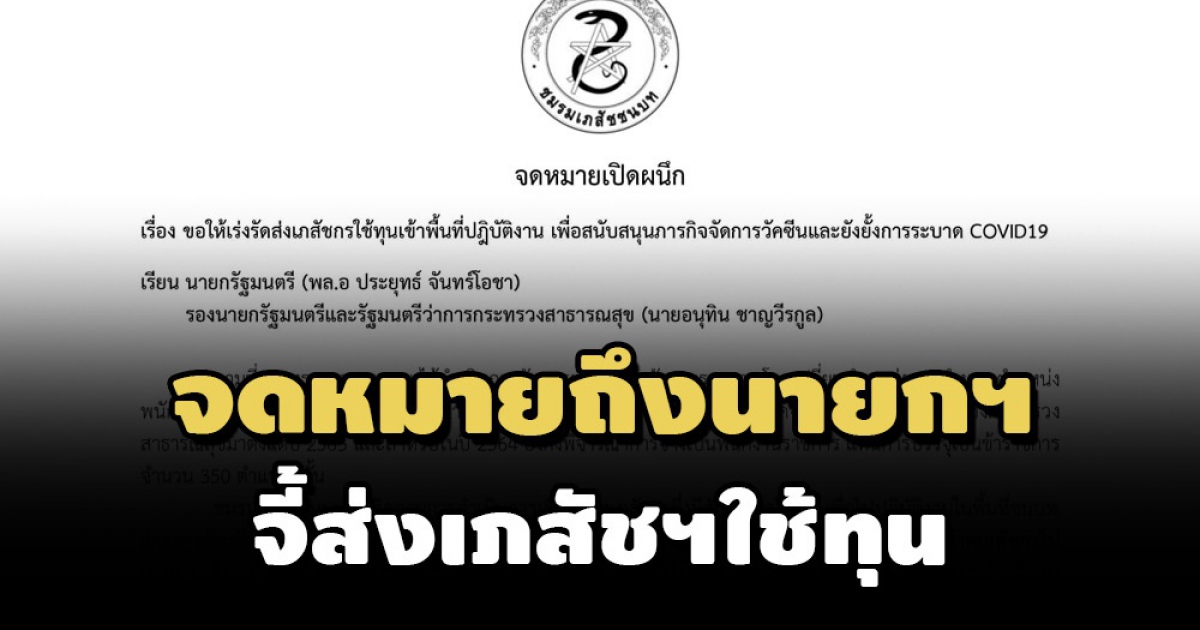 ชมรมเภสัชชนบทออกจดหมายเปิดผนึกถึงนายกรัฐมนตรี-รมว.สาธารณสุข เร่งรัดสำนักงาน ก.พ.-สธ. ปรับกระบวนการขั้นตอนจัดส่งเภสัชกรใช้ทุน เข้าไปปฏิบัติงานในพื้นที่ภายใน 15 ก.ค.นี้