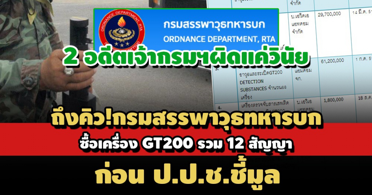 สำนักข่าวอิศรา (www.isranews.org) ได้รับการยืนยันข้อมูลว่า กรมสรรพาวุธทหารบก ดำเนินการจัดซื้อเครื่อง GT200 และ Alpha6 อย่างน้อย 12 สัญญา โดยบุคคลที่ถูก ป.ป.ช. ชี้มูลความผิดแบ่งเป็น 2 กลุ่ม ได้แก่
