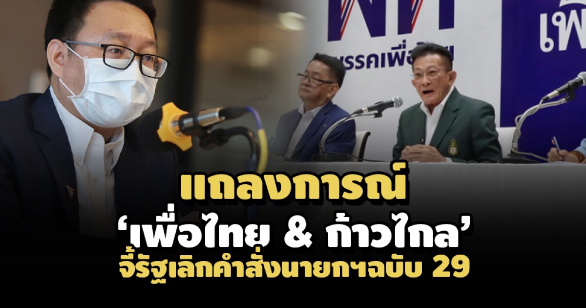 4. ด้วยเหตุผลดังที่กล่าวมาแล้ว พรรคก้าวไกลจึงขอเรียกร้องให้นายกรัฐมนตรยกเลิกข้อกำหนดฉบับที่ 29 ทันที และจากนั้นควรยกเลิกการประกาศใช้ พ.ร.ก.การบริหารราชการในสถานการณ์ฉุกเฉิน พ.ศ. 2548 แล้วกลับไปสู่การรับมือและแก้ไขสถานการณ์ COVID-19 อย่างจริงจังภายใต้ระบบกฎหมายปรกติ โดยรัฐบาลที่สามารถแก้ไขวิกฤตได้ ไม่ใช่รัฐบาล พล.อ.ประยุทธ์ จันทร์โอชา อีกต่อไปแล้ว เพราะในวันนี้พิสูจน์แล้วว่ารัฐบาลชุดนี้เป็นภาระอันหนักอึ้งเหลือเกินสำหรับประเทศนี้