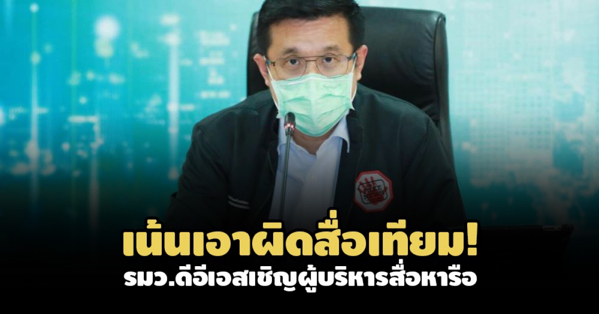 รมว.ดีอีเอส เชิญ ผู้บริหารองค์กรสื่อหารือ หลังแพร่คำสั่งนายกฯ ข้อกำหนดตาม พ.ร.ก.ฉุกเฉินฯ ฉบับ 27, 29 ห้ามแพร่ข่าวสร้างความหวาดกลัว ลั่นเจตนาสำคัญเพื่อดำเนินการคน ‘ทำตัวเสมือนสื่อ-สื่อเทียม’ มักนำเสนอผ่านเฟซบุ๊ก-ทวิตเตอร์ ตั้งใจบิดเบือนเพื่อผลประโยชน์บางอย่าง
