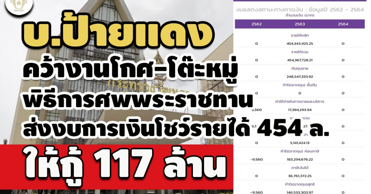 - บ.ป้ายแดง ได้งานทำโต๊ะหมู่พิธีการศพพระราชทานอีก 6 ล.-วธ.ลงนามสัญญาหลังจัดตั้ง 2 วัน?