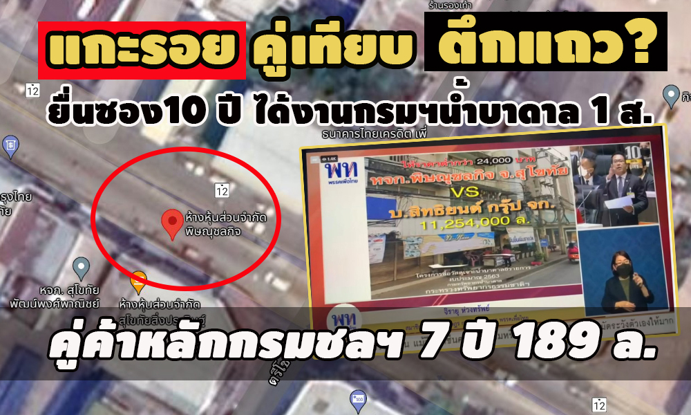 "...เมื่อย้อนกลับไปตรวจสอบข้อมูลการจัดซื้อจัดจ้างโครงการฯ ที่ บริษัท สิทธิยนต์ กรุ๊ป จำกัด เป็นคู่สัญญา ของ กรมทรัพยากรน้ำบาดาล พบว่า มีหลายสัญญาที่ปรากฎชื่อ ห้างหุ้นส่วนจำกัด พิษณุชลกิจ เข้าเป็นคู่เทียบยื่นซองเสนอราคาด้วย แต่แพ้ไปทั้งหมดจริง..."