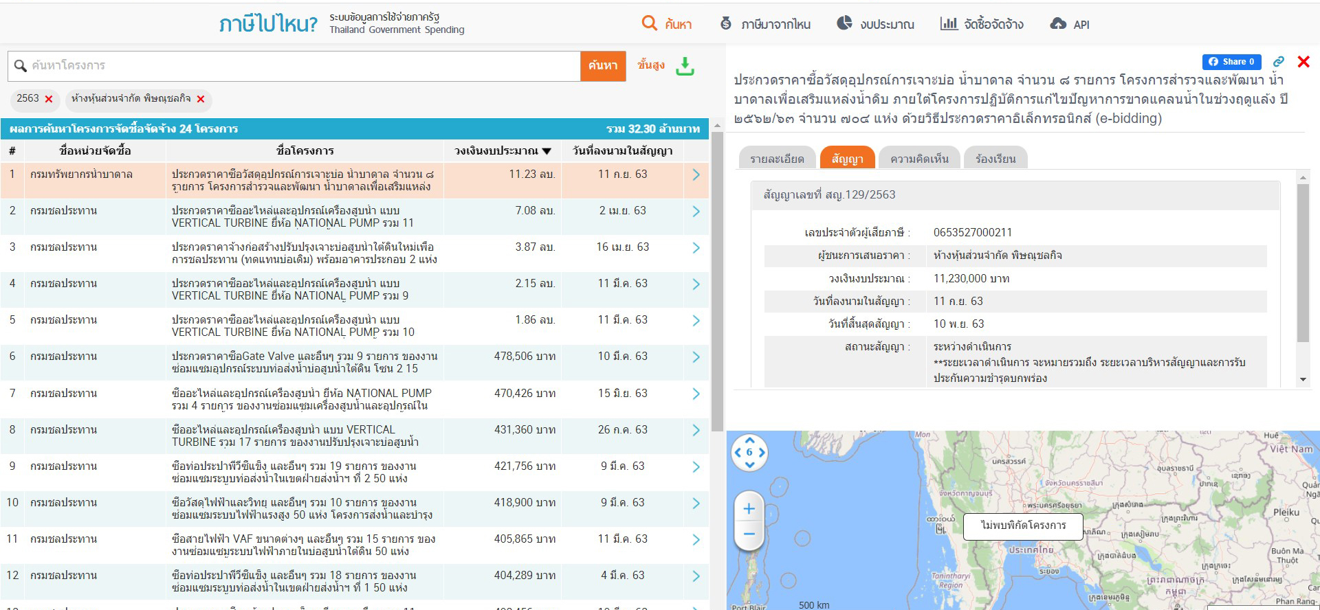 เมื่อสืบค้นฐานข้อมูลจัดซื้อจัดจ้างจากเว็บไซต์ภาษีไปไหน ซึ่งเริ่มต้นบันทึกข้อมูลการจัดซื้อจัดจ้างเป็นทางการ ตั้งแต่ปี 2558 เป็นต้นมา (ยึดตามข้อมูลที่ปรากฏอยู่ในเว็บไซต์ภาษีไปไหน)