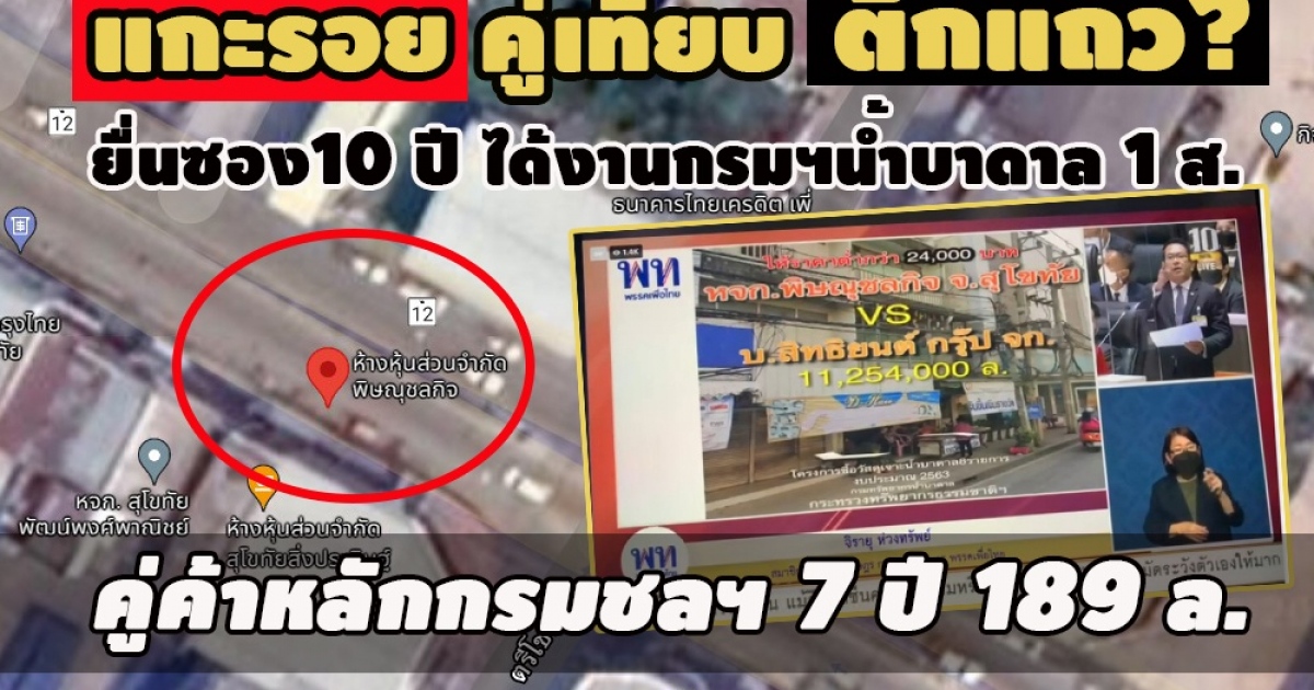 พบว่า มีหลายสัญญาที่ปรากฎชื่อ ห้างหุ้นส่วนจำกัด พิษณุชลกิจ เข้าเป็นคู่เทียบยื่นซองเสนอราคาด้วย แต่แพ้ไปทั้งหมดจริง (ดูข้อมูลบางส่วนประกอบ)