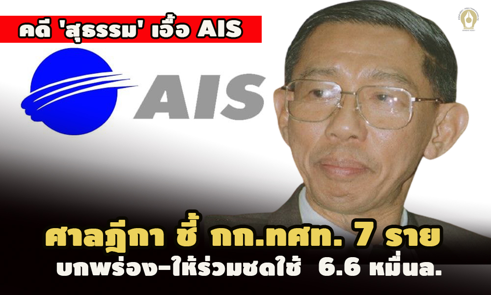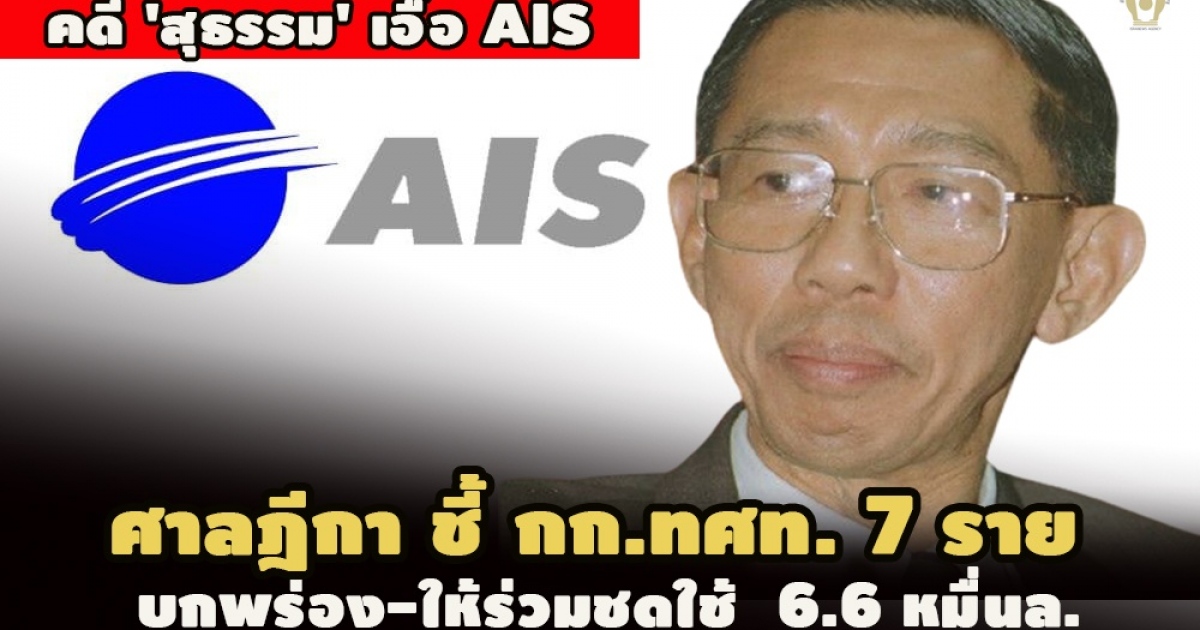 'อิศรา' เจาะคำพิพากษาศาลฎีกายืนตามศาลอุทธรณ์ สั่งจำคุก 6 ปี 'สุธรรม มลิลา' อดีต ผอ.ทศท. คดีเอื้อประโยชน์เอไอเอส-ให้ชดใช้เงิน 4.6 หมื่นล้าน พร้อมดอกเบี้ยร้อยละ 7.5 ต่อปี พบมีชี้ กก. ทศท. 7 ราย ที่เข้าประชุมอนุมัติด้วย บกพร่องในหน้าที่ ต้องร่วมชดใช้ความเสียหายด้วย 6.6 หมื่นล.