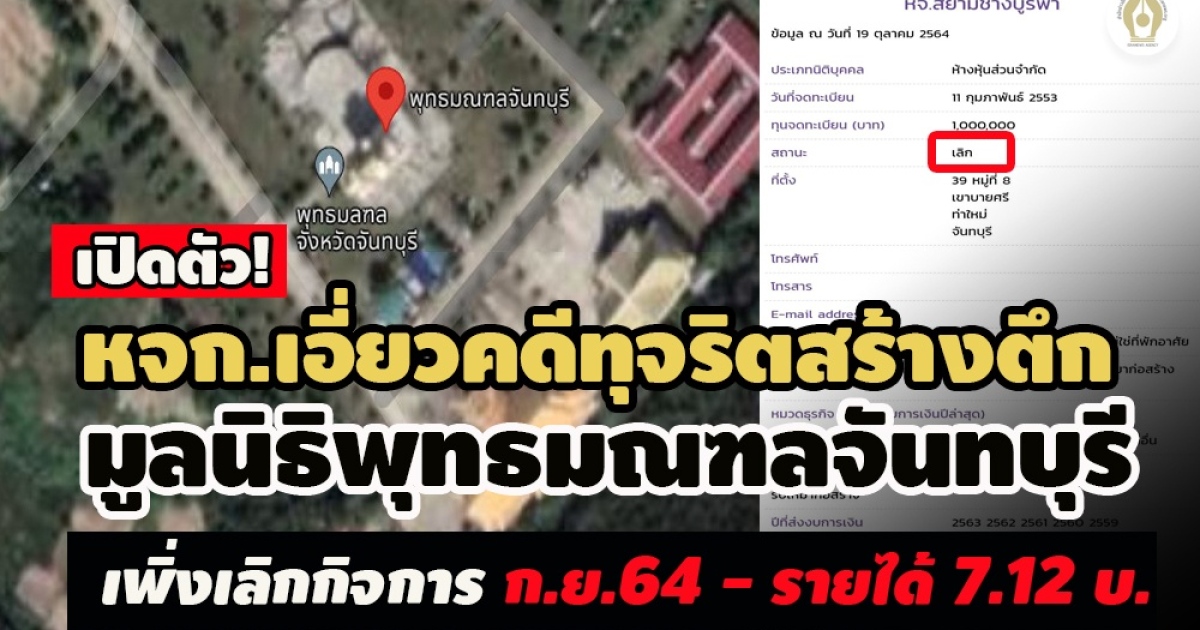 ปรากฏชื่ออยู่ใน ปฏิบัติการ “จันทบูร” ของ พล.ต.ท.จิรภพ ภูริเดช ผู้บัญชาการตำรวจสอบสวนกลาง (ผบช.ก.) ที่สั่งการให้ พล.ต.ต.จรูญเกียรติ ปานแก้ว ผู้บังคับการป้องกันและปราบปรามการกระทำความผิดเกี่ยวกับการทุจริตและประพฤติมิชอบ (ผบก.ปปป.) นำกำลังเจ้าหน้าที่ บก.ปปป. บูรณาการกำลังร่วมกับเจ้าหน้าที่ บก.ป. ,บก.ทล. ,บก.ปอท. บก.ปอศ. รวมถึงหน่วยงานอื่นๆในสังกัด บช.ก. และเจ้าหน้าที่สำนักงานป้องกันและปราบปรามการทุจริตในภาครัฐ (ป.ป.ท.) กว่า 100 นาย นำหมายค้นศาลอาญาคดีทุจริตและประพฤติมิชอบภาค 2 เข้าตรวจค้นพื้นที่เป้าหมายจำนวน 9 จุด ในพื้นที่ จ.จันทบุรี เพื่อเชิญตัวผู้เกี่ยวข้องกับการทุจริตงบสนับสนุนมูลนิธิพุทธมณฑลจังหวัดจันทบุรีมาทำการแจ้งข้อกล่าวหา ตามความผิดประมวลกฎหมายอาญา มาตรา 157 ละเว้นหรือปฏิบัติหน้าที่โดยมิชอบหรือทุจริต และมาตรา 151 ผู้ใดเป็นเจ้าพนักงาน มีหน้าที่ซื้อ ทำ จัดการหรือรักษาทรัพย์ใด ๆ ใช้อำนาจในตำแหน่งโดยทุจริต อันเป็นการเสียหายแก่รัฐ ในช่วงเช้าตรู วันที่ 19 ตุลาคม 2564 ที่ผ่านมา