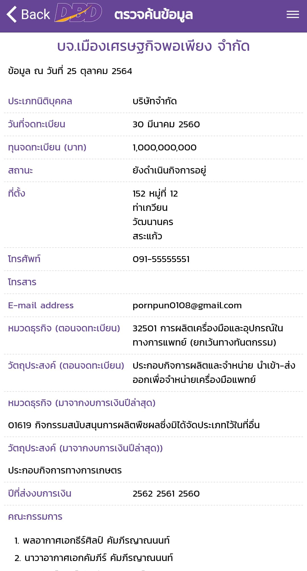 สำหรับข้อมูลเกี่ยวกับ SkyMed นั้น จากการตรวจสอบพบว่าเป็นสินค้าของ บริษัท เมืองเศรษฐกิจพอเพียง จำกัด จดทะเบียนจัดตั้ง 30 มีนาคม 2560 ทุน 1,000,000,000 บาท ตั้งอยู่เลขที่ 152 หมู่ 12 ตำบลท่าเกวียน อำเภอวัฒนานคร จังหวัดสระแก้ว