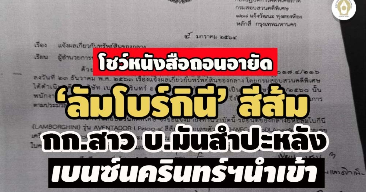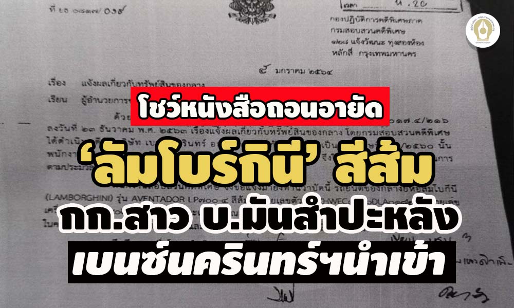 - เผยโฉมหนังสือถอนอายัด ลัมโบร์กินี ‘ผู้กำกับโจ้’