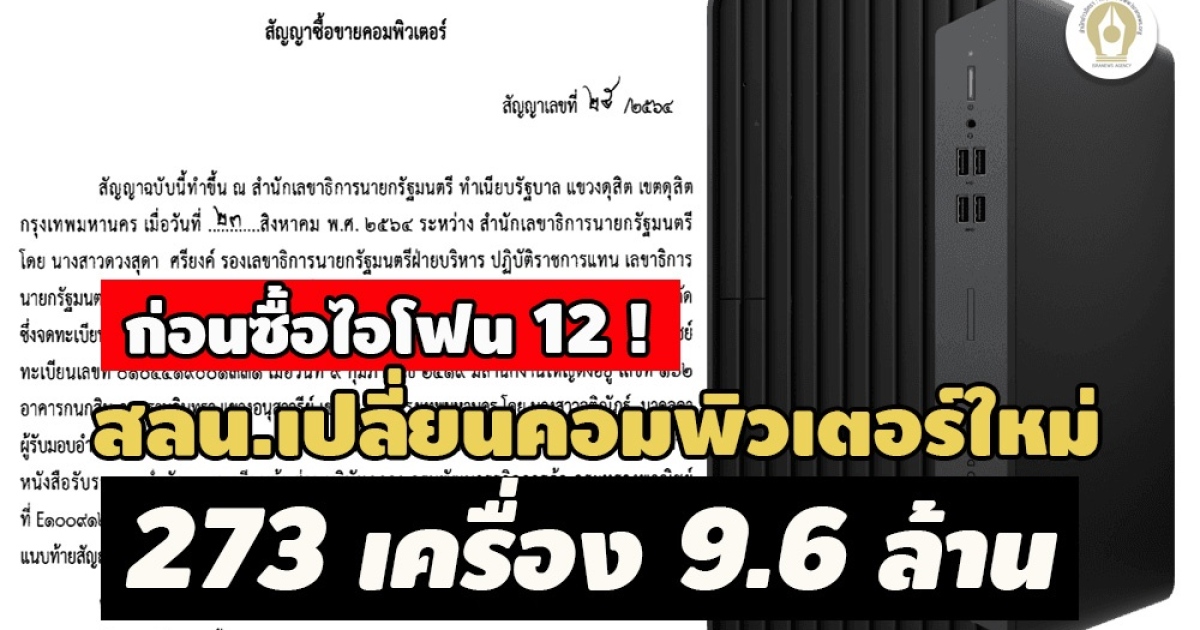 "...เมื่อวันที่ 23 สิงหาคม 2564 สำนักเลขาธิการนายกรัฐมนตรี ได้ทำสัญญาซื้อขายคอมพิวเตอร์ เลขที่ 25 /2564 กับ บริษัท กนกสิน เอ๊กซปอร์ต อิมปอร์ต จำกัด ตกลงซื้อขายและติดตั้งคอมพิวเตอร์ และเครื่องพิมพ์ จำนวน 5 รายการ รวมวงเงิน 9,600,114.90 บาท (นับรวมเฉพาะเครื่องคอมพิวเตอร์ทั้งตั้งโต๊ะ และโน๊ตบุ๊ก จำนวน 273 เครื่อง) ..."