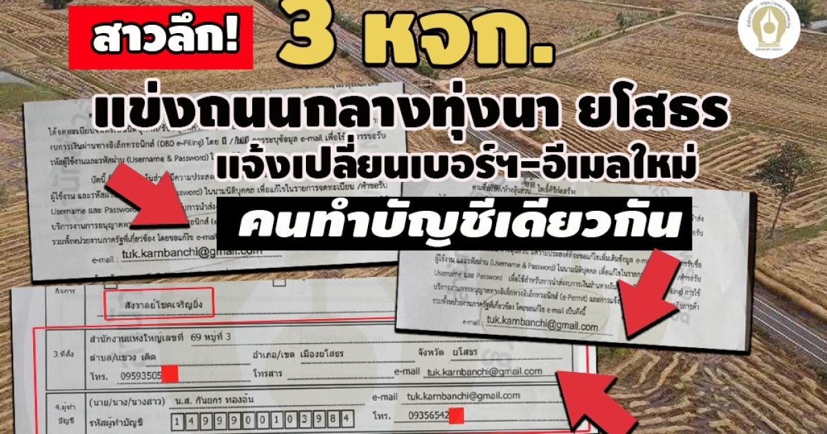 - พบ 'ผู้ชนะ-คู่เทียบ' ใช้เบอร์ฯ-อีเมลเดียวกัน แข่งถนนชลประทานกลางทุ่งนา ยโสธร 10 โครงการ (4)