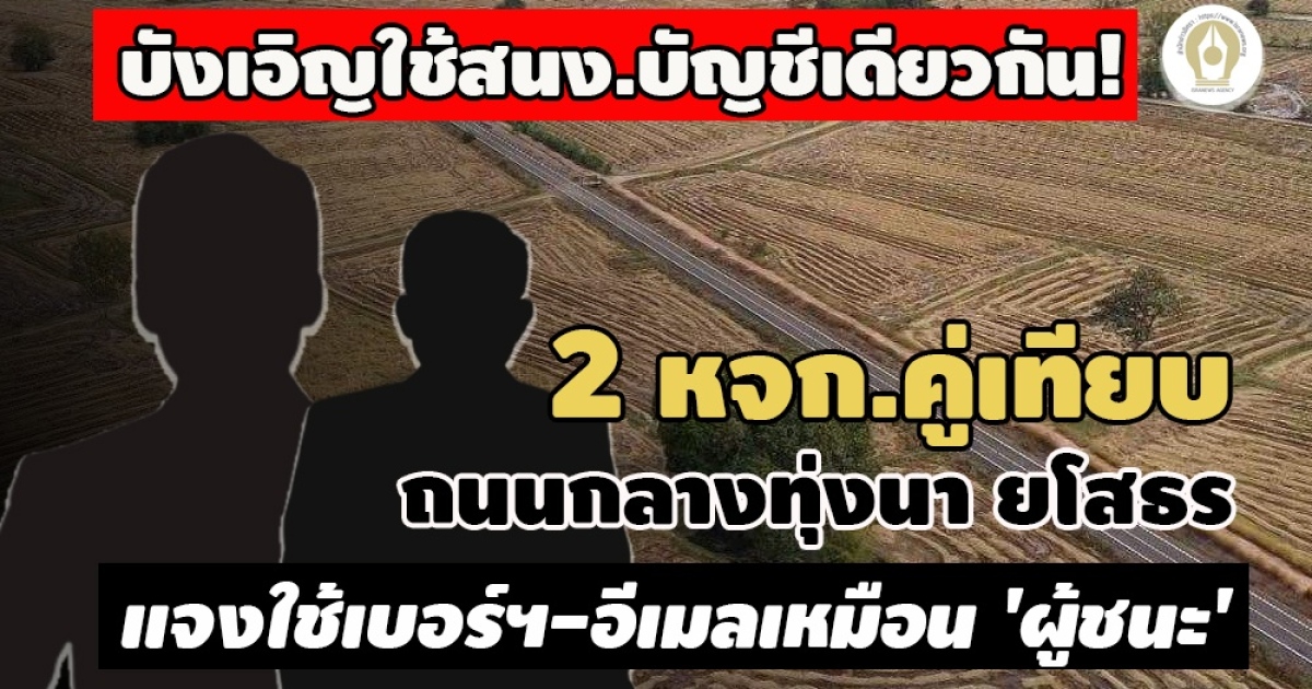 - พบ 'ผู้ชนะ-คู่เทียบ' ใช้เบอร์ฯ-อีเมลเดียวกัน แข่งถนนชลประทานกลางทุ่งนา ยโสธร 10 โครงการ