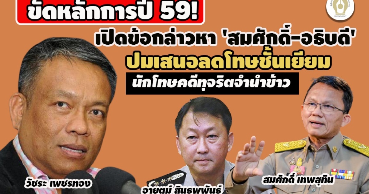 คือ คำให้สัมภาษณ์ของ นายวัชระ เพชรทอง อดีต ส.ส.พรรคประชาธิปัตย์ ภายหลังเข้ายื่นหนังสือต่อ พล.ต.อ.วัชรพล ประสารราชกิจ ประธานคณะกรรมการป้องกันและปราบปรามการทุจริตแห่งชาติ (ป.ป.ช.) และ นายนิวัติไชย เกษมมงคล เลขาธิการ ป.ป.ช. เพื่อขอตั้งคณะอนุกรรมการไต่สวนนายสมศักดิ์ เทพสุทิน รัฐมนตรีว่าการกระทรวงยุติธรรม และนายอายุตม์ สินธพพันธุ์ อธิบดีกรมราชทัณฑ์กับพวกกรณีเสนอลดโทษชั้นเยี่ยมให้แก่นักโทษคดีทุจริตจำนำข้าวว่าผิดกฎหมายอื่นใดหรือผิดจริยธรรมร้ายแรงหรือไม่ เนื่องจากที่ผ่านมาได้รับการร้องเรียนจากประชาชนว่าการกระทำของนายสมศักดิ์กับพวกส่อว่ามีการกระทำที่ผิดกฎหมาย