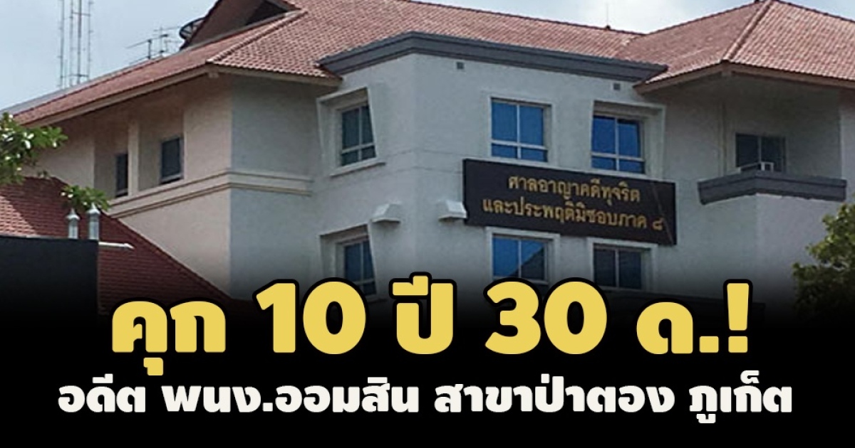 • คุก 10 ปี 30 ด.! อดีต พนง.ออมสิน สาขาป่าตอง ภูเก็ต ปลอมลายมือชื่อลูกค้าถอนเงิน