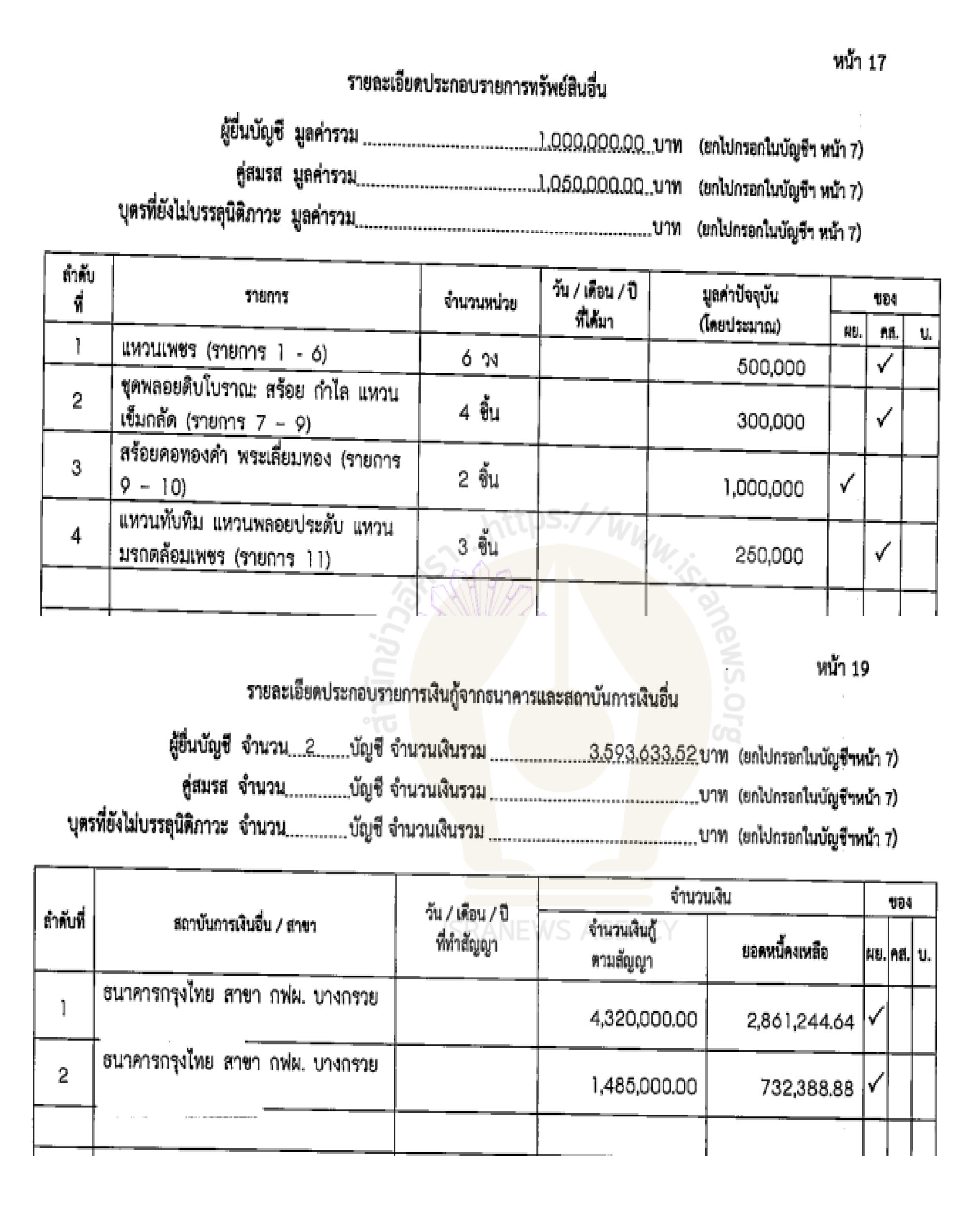 บัญชีทรัพย์สินเจ้าหน้าที่ของรัฐรายอื่น