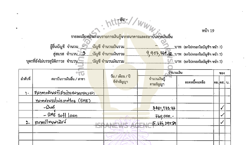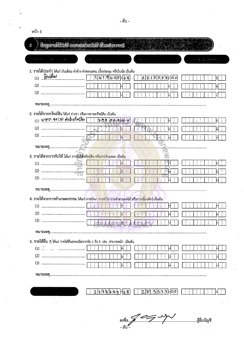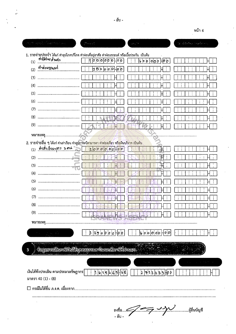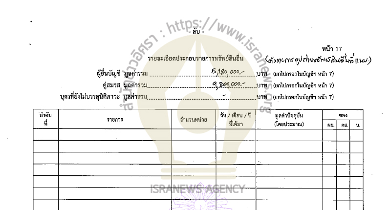 คู่สมรส แจ้งมีรายได้ต่อปี 2,713,333 บาท จากเงินเดือน มีรายจ่าย 600,000 บาทจากค่าใช้จ่ายส่วนตัว