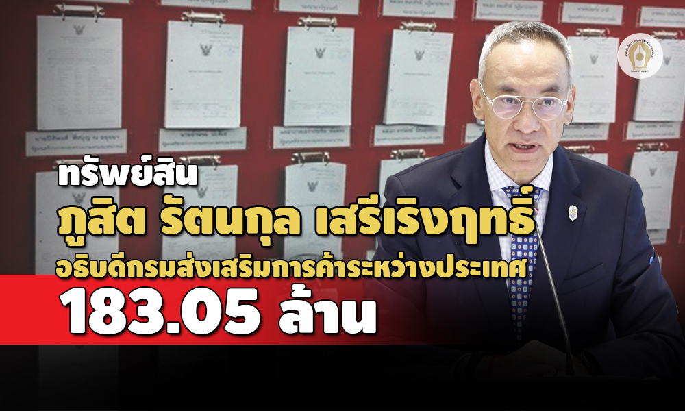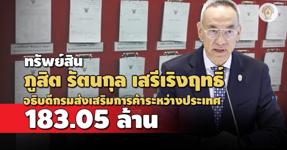 เปิดทรัพย์สิน 183.05 ล้านบาท 'ภูสิต รัตนกุล เสรีเริงฤทธิ์' อธิบดีกรมส่งเสริมการค้าระหว่างประเทศ - ภรรยา เงินฝากรวม 17 บัญชี 51 ล้านบาท ห้องชุด-อาคาร 7 หลัง 67 ล้านบาท