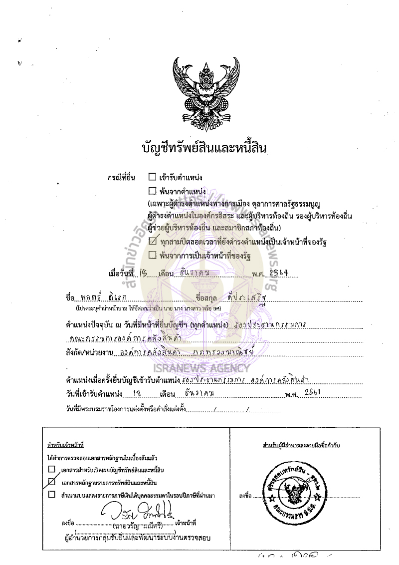 ผู้สื่อข่าวรายงานว่า เมื่อวันที่ 1 มี.ค.2565 สำนักงานคณะกรรมการป้องกันและปราบปรามการทุจริตแห่งชาติ (ป.ป.ช.) เปิดเผยบัญชีทรัพย์สินและหนี้สินและเอกสารประกอบของผู้ดำรงตำแหน่งระดับสูง รายของ พล.ต.ดิเรก ดีประเสริฐ รองประธานกรรมการองค์การคลังสินค้า และรองเจ้ากรมยุทธศึกษาทหารบก กรมยุทธศึกษาทหารบก กรณีทุก 3 ปีตลอดเวลาที่ยังดำรงตำแหน่งเป็นเจ้าหน้าที่ของรัฐ เมื่อวันที่ 18 ธ.ค.2564