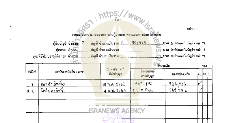 แจ้งมีรายจ่าย 901,919 บาท จากเงินกู้ธนาคารและสถาบันการเงินอื่น