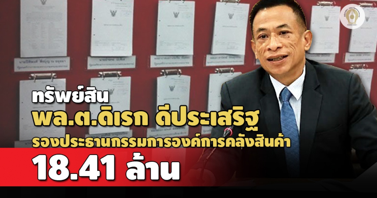 ป.ป.ช.เปิดทรัพย์สิน 18.41 ล้านบาท 'พล.ต.ดิเรก ดีประเสริฐ' รองประธานบอร์ด อคส. บ้านแฝด 7 ล.รถ 2 คัน - ภรรยา ไม่ประกอบอาชีพ แจ้งมีเงินฝาก 3 บัญชี 8.49 ล.