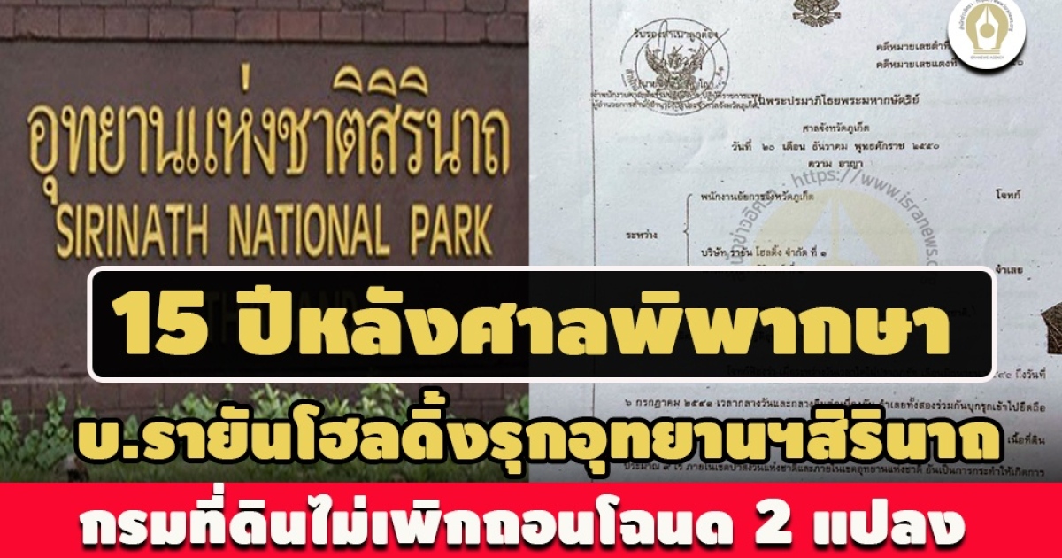อีกกรณีศึกษาคดีรุกอุทยานฯสิรินาถ จ.ภูเก็ต บ.รายัน โฮลดิ้ง กับพวก 9 ไร่ พันล. หลังศาลชั้นต้นพิพากษาปลายปี 50 จำคุก 1 ปี ปรับ 20,000 บาท ให้รื้อถอนสิ่งปลูกสร้าง 8 หลัง เอกสารสิทธิ์ออกมิชอบ ศาลอุทธรณ์ภาค 8 พิพากษายืน คดีสิ้นสุด ล่าสุด คกก.ตรวจสอบ ม. 61 กรมที่ดิน ไม่เพิกถอนโฉนด 2 แปลง ให้หน่วยงานยื่นฟ้องศาลปกครองเอาเอง