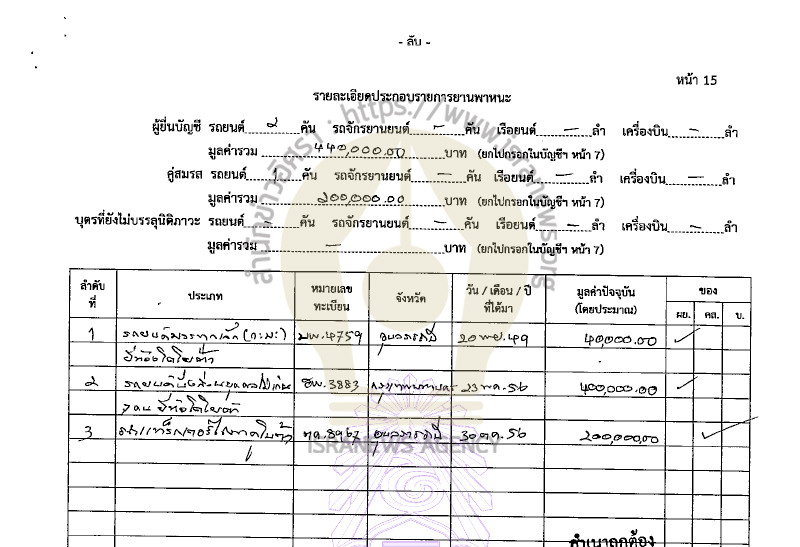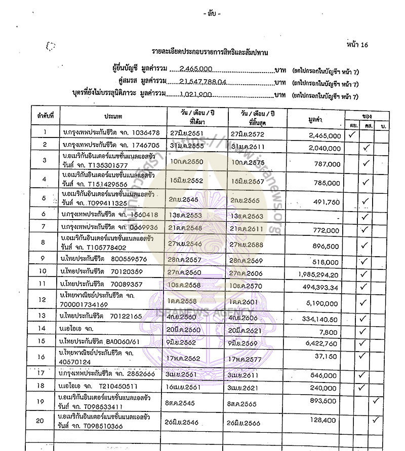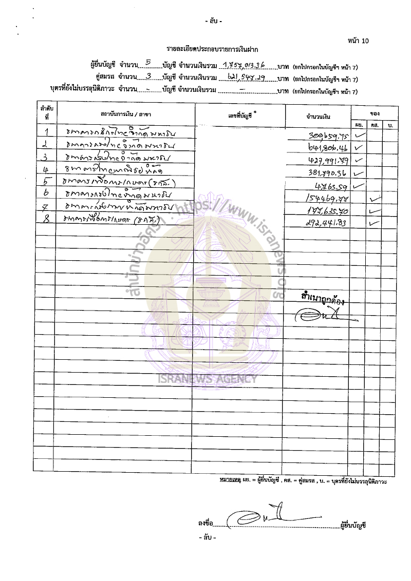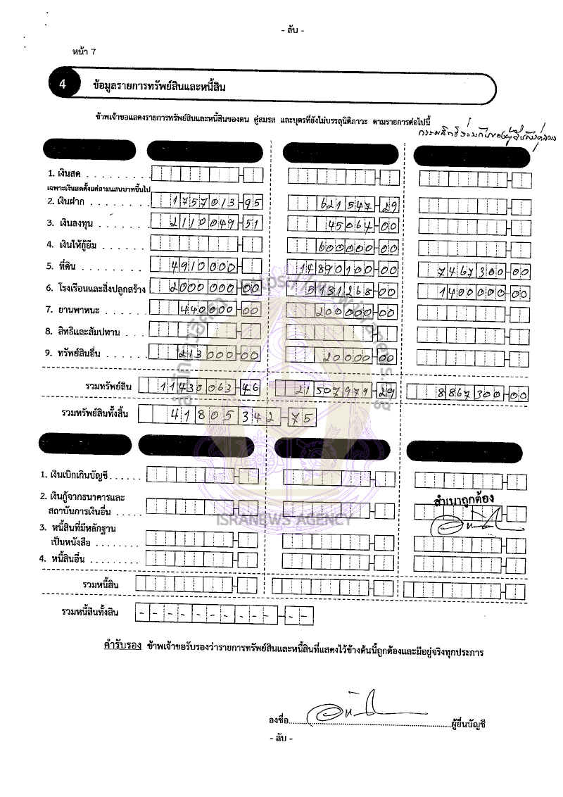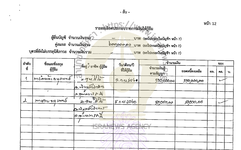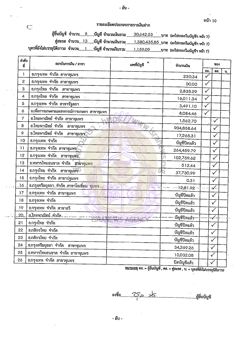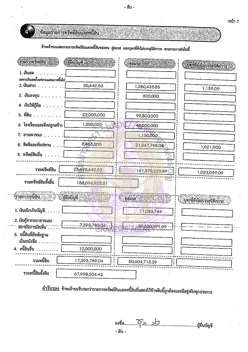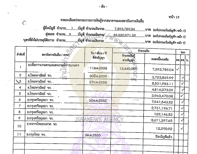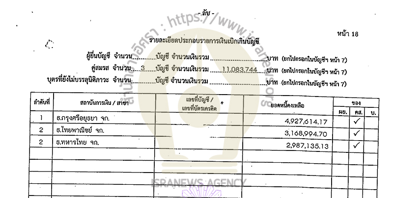 แจ้งมีหนี้สิน 50,604,715.39 บาท จากเงินเบิกเกินบัญชี 11,083,744 บาท และเงินก็จากธนาคาร 39,520,971.39 บาท