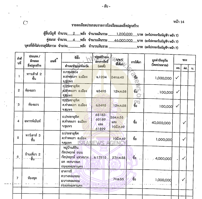 - พ่อภรรยายกให้บ้านที่ดิน119 ล.! ทรัพย์สิน พล.อ.สมศักดิ์ อดีตรองปลัด ก.กลาโหม 2 ล.