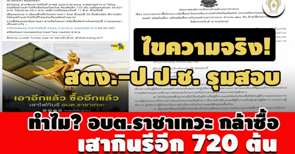 • ไขความจริง! สตง.-ป.ป.ช. รุมสอบ ทำไม 'อบต.ราชาเทวะ' กล้าซื้อเสากินรีอีก 720 ต้น  68.2 ล.