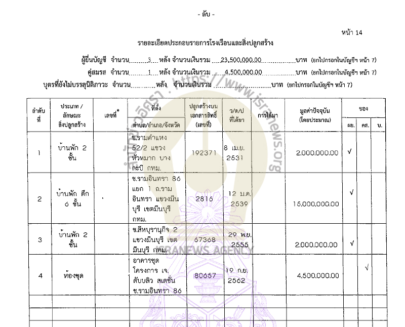 - พ่อภรรยายกให้บ้านที่ดิน119 ล.! ทรัพย์สิน พล.อ.สมศักดิ์ อดีตรองปลัด ก.กลาโหม 2 ล.