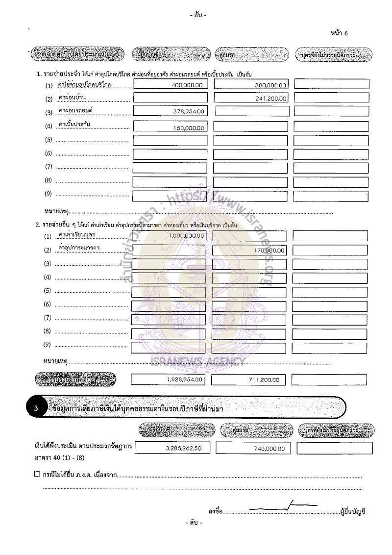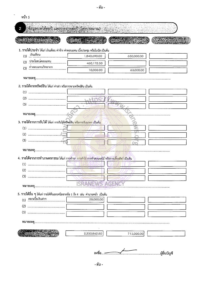 แจ้งมีรายจ่าย 711,200 บาท จากค่าใช้จ่ายอุปโภคบริโภค 300,000 บาท ผ่อนบ้าน 241,200 บาท อุปการะมารดา 170,000 บาท