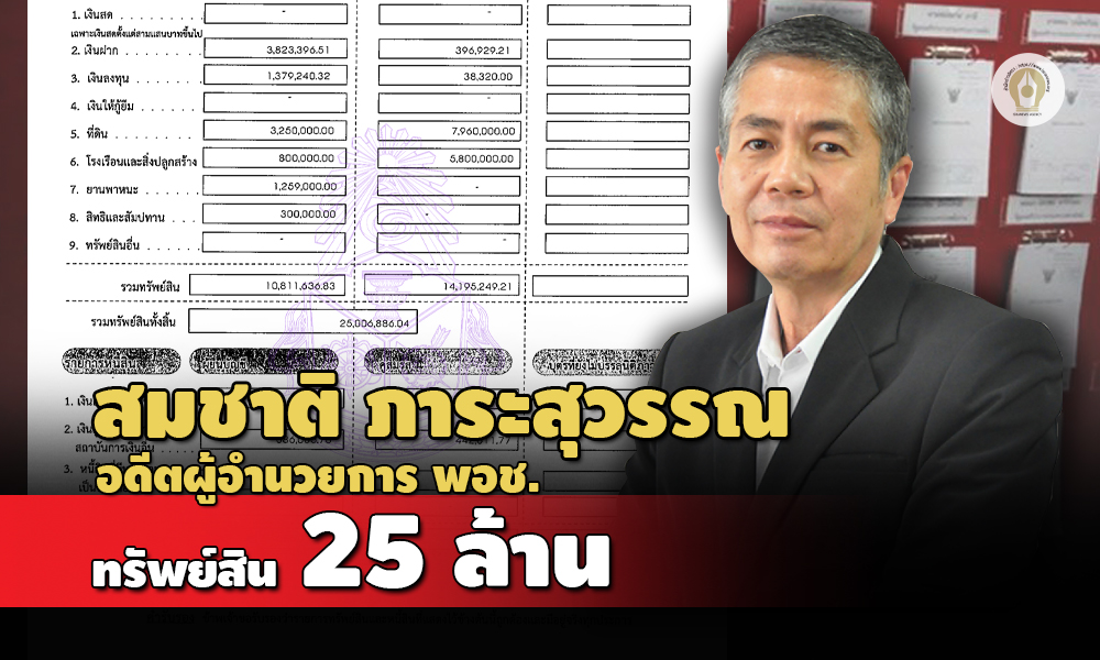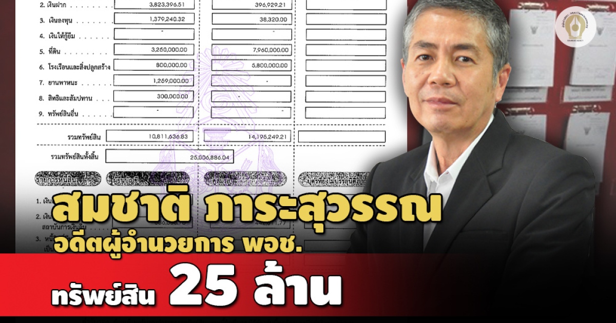 ทรัพย์สิน 25 ล้านบาท'สมชาติ ภาระสุวรรณ'พ้นผู้อำนวยการ พอช. เงินฝาก 10 บัญชี 4.22 ล้านบาท บ้าน-ที่ดิน รวม 17.81 ล้านบาท