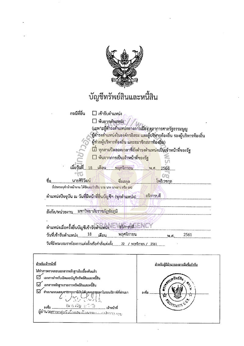 ผู้สื่อข่าวรายงานว่า เมื่อวันที่ 18 มี.ค.2565 สำนักงานคณะกรรมการป้องกันและปราบปรามการทุจริตแห่งชาติ (ป.ป.ช.) เปิดเผยบัญชีทรัพย์สินและหนี้สินและเอกสารประกอบของผู้ดำรงตำแหน่งระดับสูง รายของ นายศิริวัฒน์ โพธิเวชกุล อธิการบดีมหาวิทยาลัยราชภัฏชัยภูมิ กรณี ทุก 3 ปีตลอดเวลาที่ยังดำรงตำแหน่งเป็นเจ้าหน้าที่รัฐ เมื่อวันที่ 18 พ.ย.2564