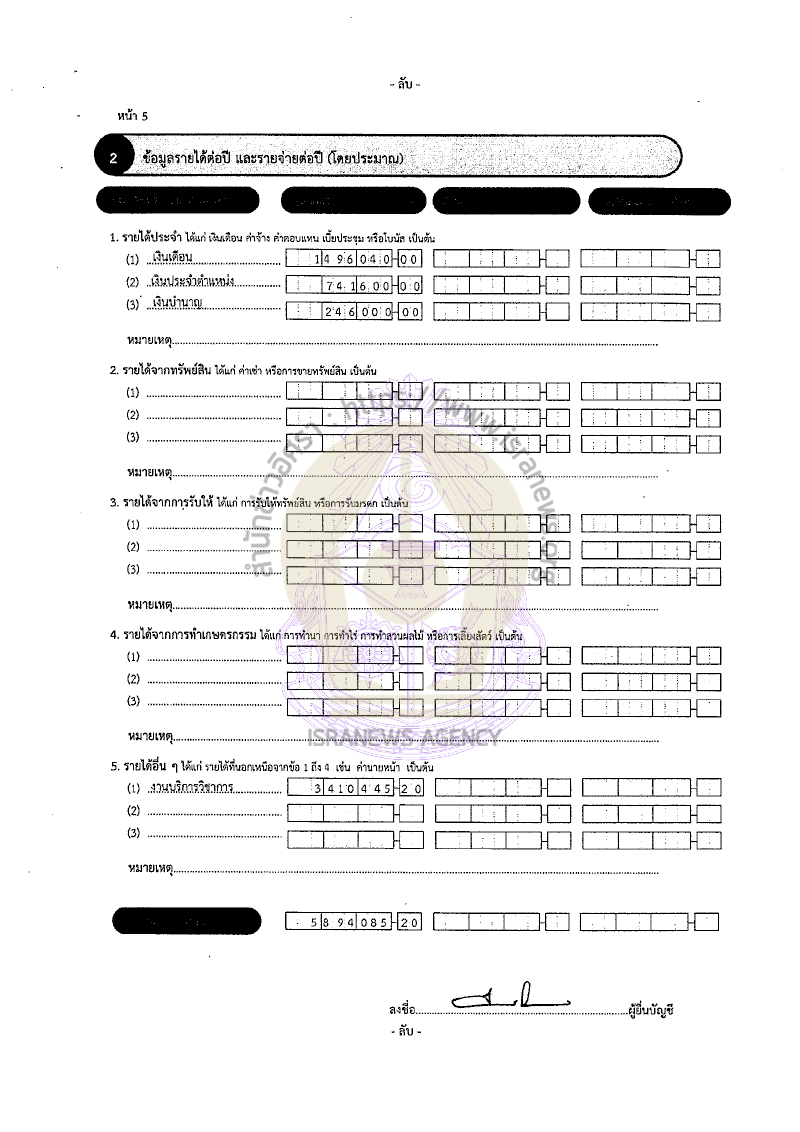 คู่สมรส ไม่ระบุรายละเอียดรายได้ต่อปี แจ้งมีรายจ่าย 240,000 บาทเป็นค่าใช้จ่ายส่วนตัว