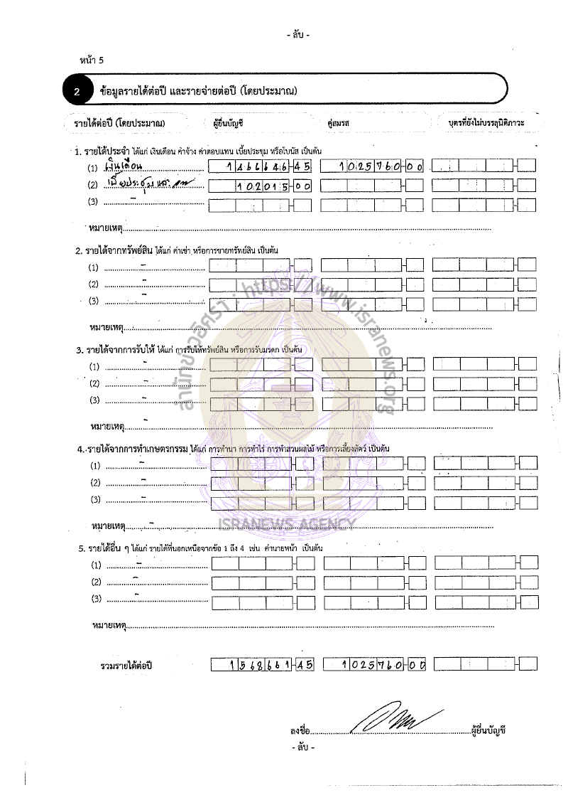 คู่สมรส แจ้งมีรายได้ต่อปี 1,025,760 บาทจากเงินเดือน