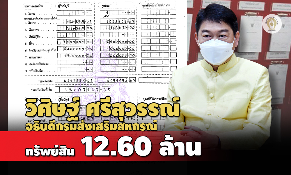ผู้สื่อข่าวรายงานว่า เมื่อวันที่ 1 มี.ค.2565 สำนักงานคณะกรรมการป้องกันและปราบปรามการทุจริตแห่งชาติ (ป.ป.ช.) เปิดเผยบัญชีทรัพย์สินและหนี้สินและเอกสารประกอบของผู้ดำรงตำแหน่งระดับสูง รายของ นายวิศิษฐ์ ศรีสุวรรณ์ อธิบดีกรมส่งเสริมสหกรณ์ กรณีทุก 3 ปีตลอดเวลาที่ยังดำรงตำแหน่งเป็นเจ้าหน้าที่รัฐ เมื่อวันที่ 2 ธ.ค.2564