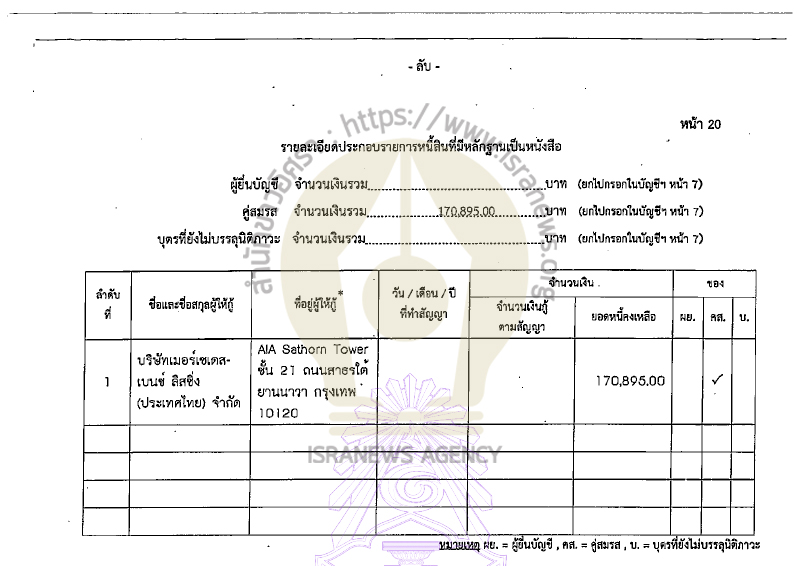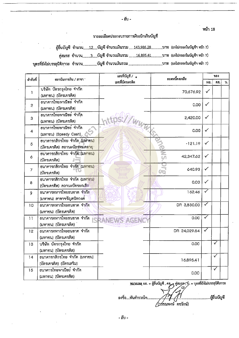มีหนี้สิน 187,790.41 บาท จากเงินเบิกเกินบัญชี 16,895.41 บาท หนี้สินที่มีหลักฐานเป็นหนังสือ 170,895 บาท