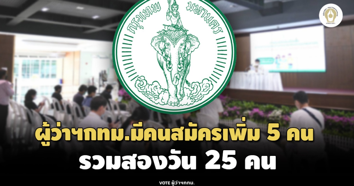 เปิดรับสมัครผู้ว่าฯ กทม. วันที่สอง มีผู้เสนอตัวเพิ่ม 5 คน ‘นิพัทธ์พน์ - วรัญชัย - เฉลิมพล – โฆสิต – ประพัฒน์’ รวม 25 คน ส่วน ส.ก.สมัครเพิ่ม 9 เขต 13 คน รวมทั้งหมด 356 คน