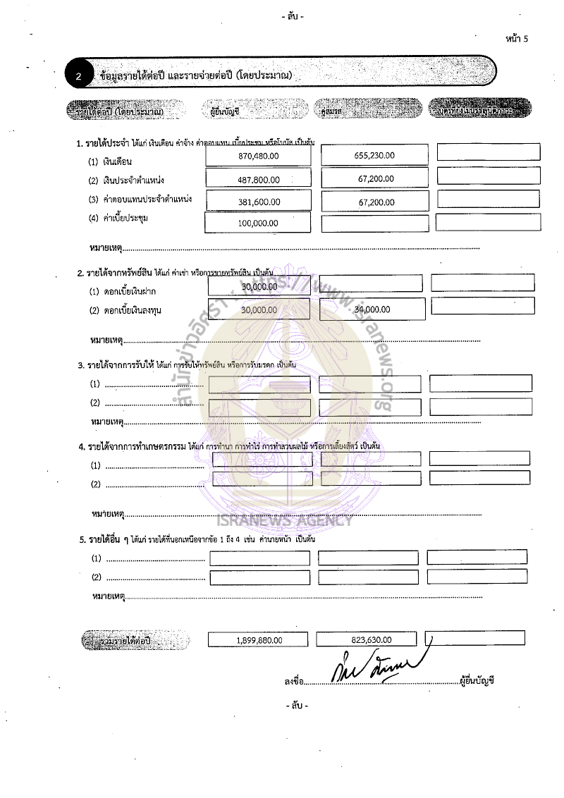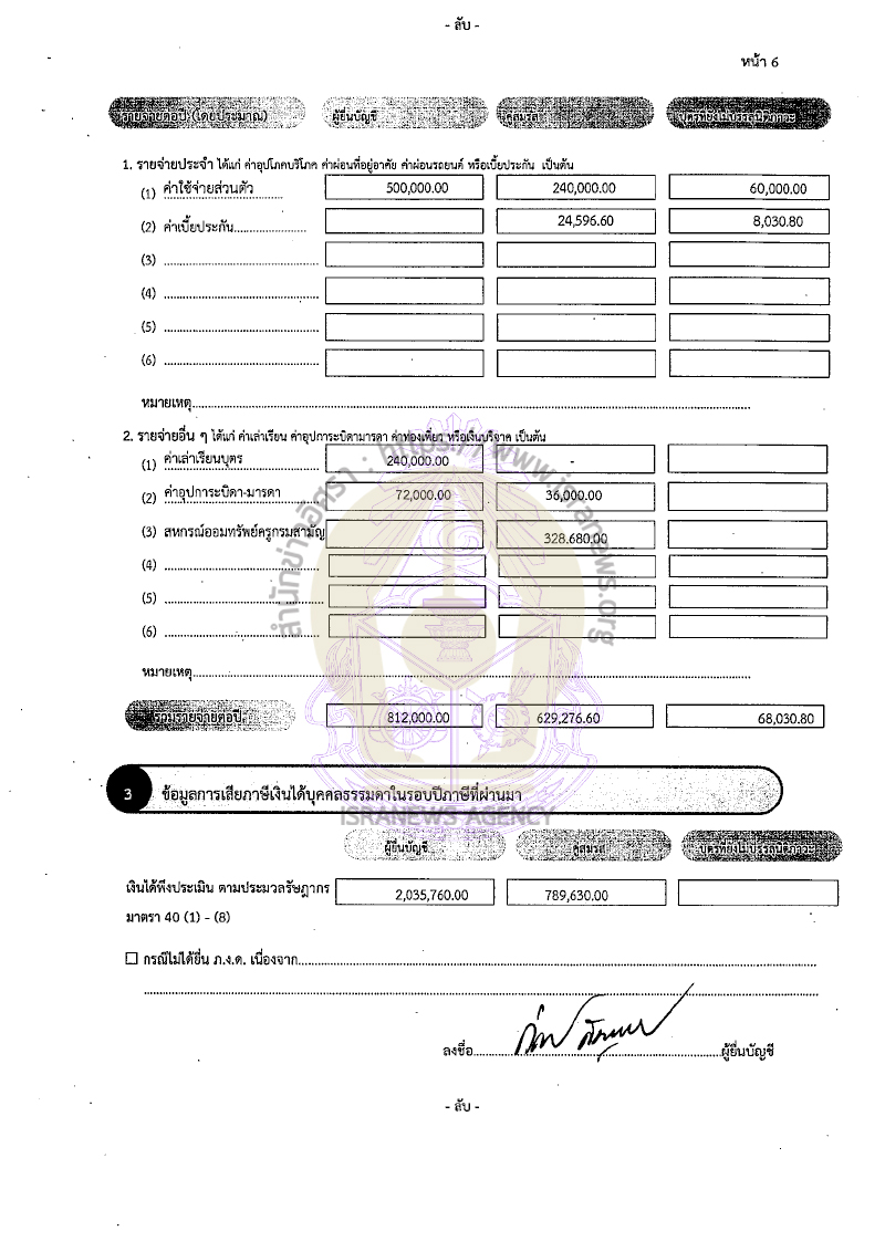 แจ้งมีรายจ่าย 812,000 บาท จากค่าใช้จ่ายส่วนตัว 500,000 บาท ค่าเล่าเรียนบุตร 240,000 บาท ค่าอุปการะบิดา-มารดา 72,000 บาท