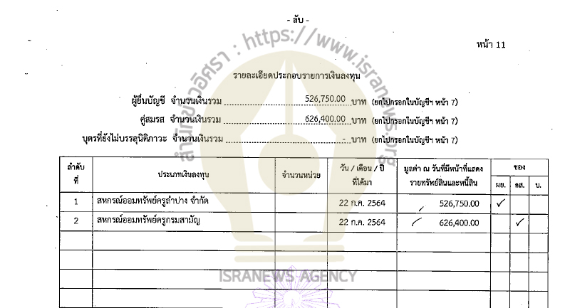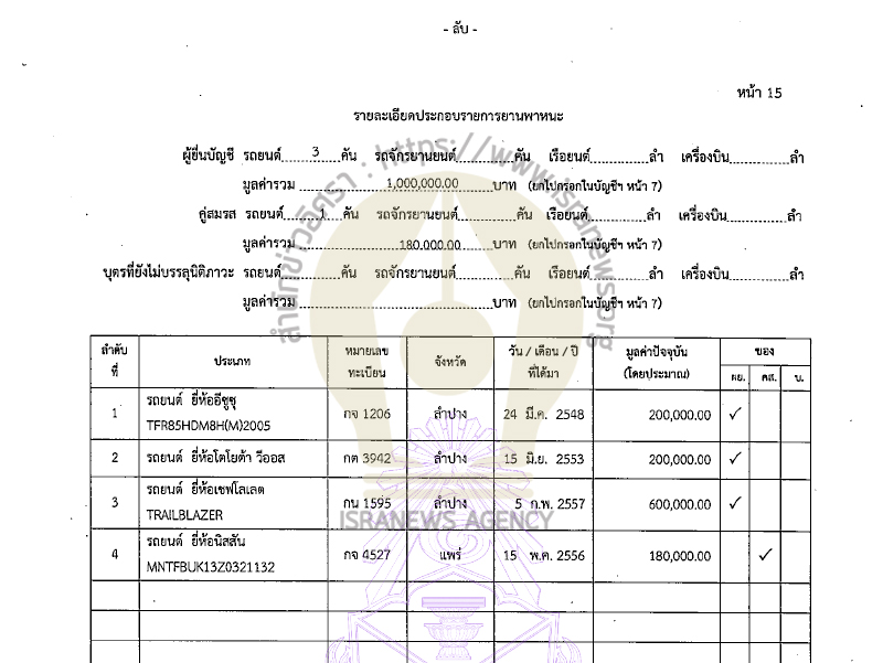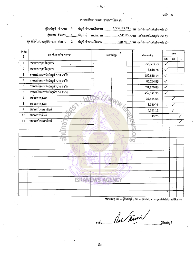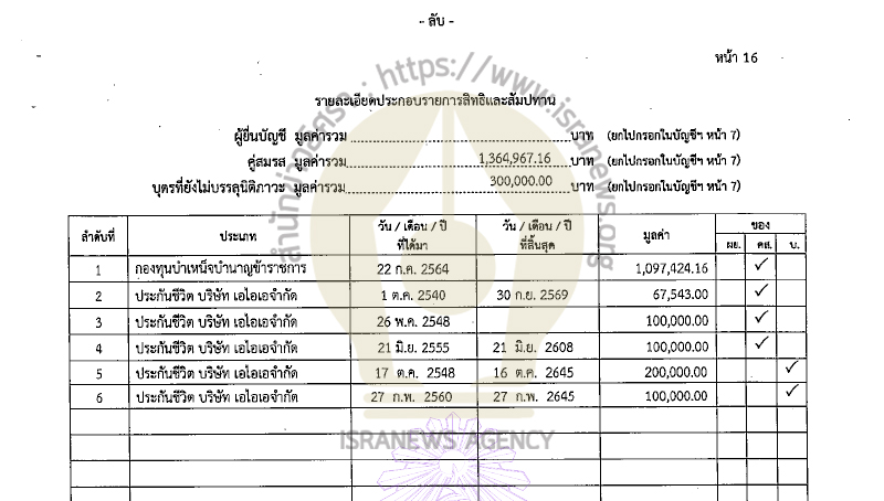 บุตรที่ยังไม่บรรลุนิติภาวะ แจ้งมีทรัพย์สิน 300,348.78 บาท จากเงินฝาก (2 บัญชี) 348.78 บาท สิทธิและสัมปทาน 300,000 บาท