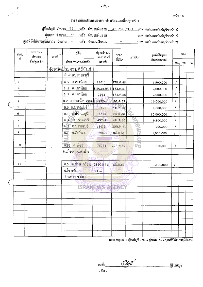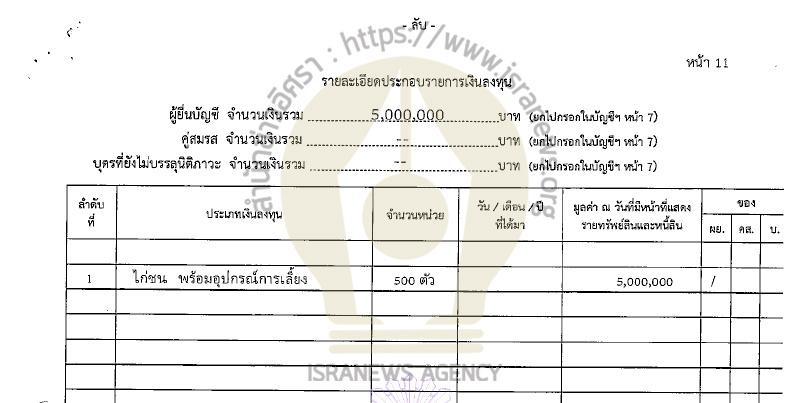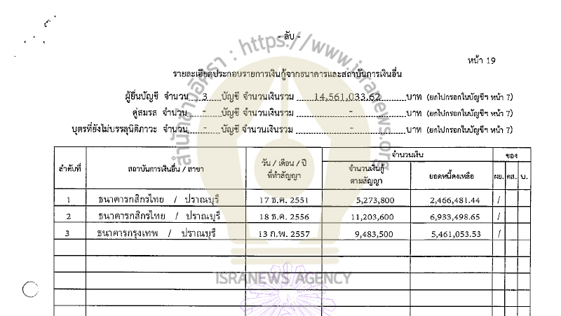 มีหนี้สิน 14,561,033.62 บาท จากเงินกู้ธนาคาร